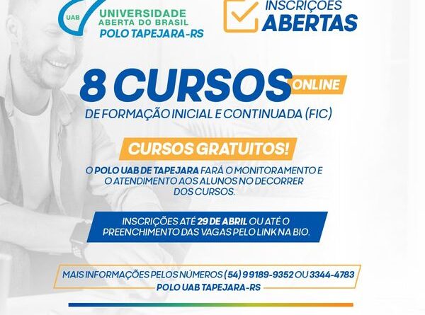O Instituto Federal de Educação, Ciência e Tecnologia Sul-rio-grandense (IFSul), em parceria com o Polo UAB de Tapejara, abriu as inscrições para 8 cursos de Formação Inicial e Continuada (FIC).