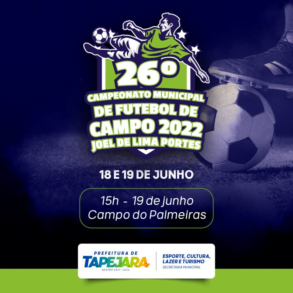 A Secretaria de Esporte, Cultura, Lazer e Turismo informa que a abertura oficial do 26º Campeonato Municipal de Futebol de Campo Joel de Lima Portes acontece neste domingo, 19, às 15h, no Campo do Palmeiras e a partida é entre Molecada e Construtech PUB S/A.