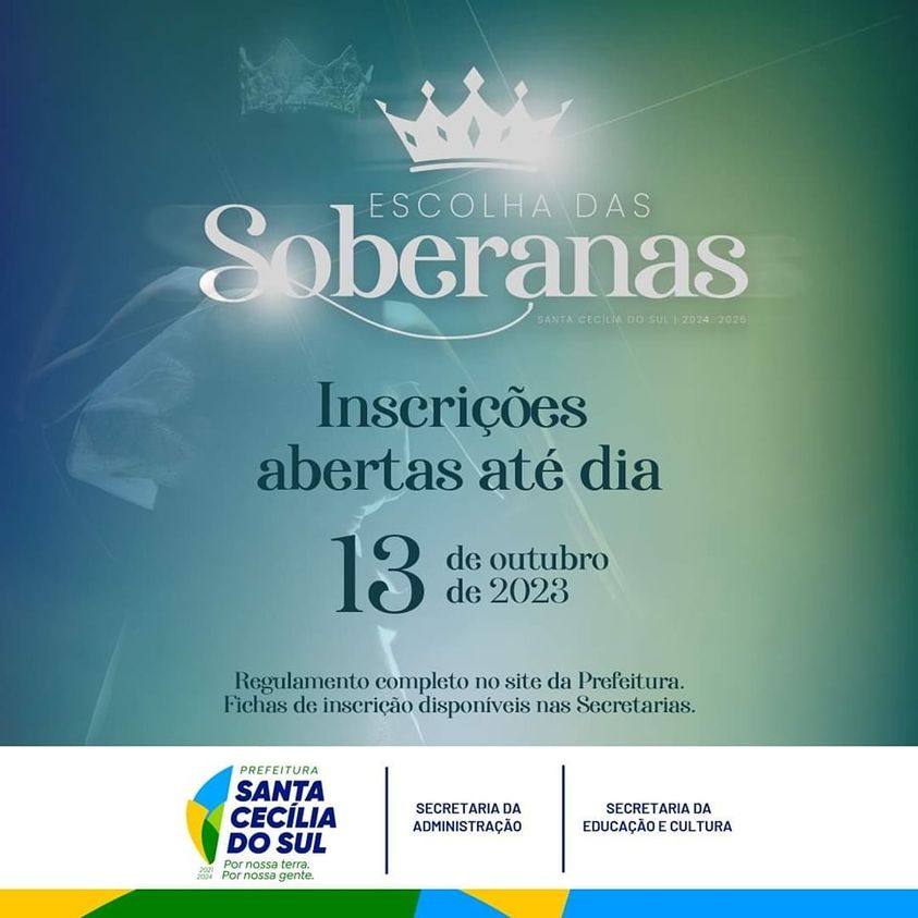 O momento de escolher as Soberanas de Santa Cecília do Sul para os anos 2024 a 2025 está chegando!