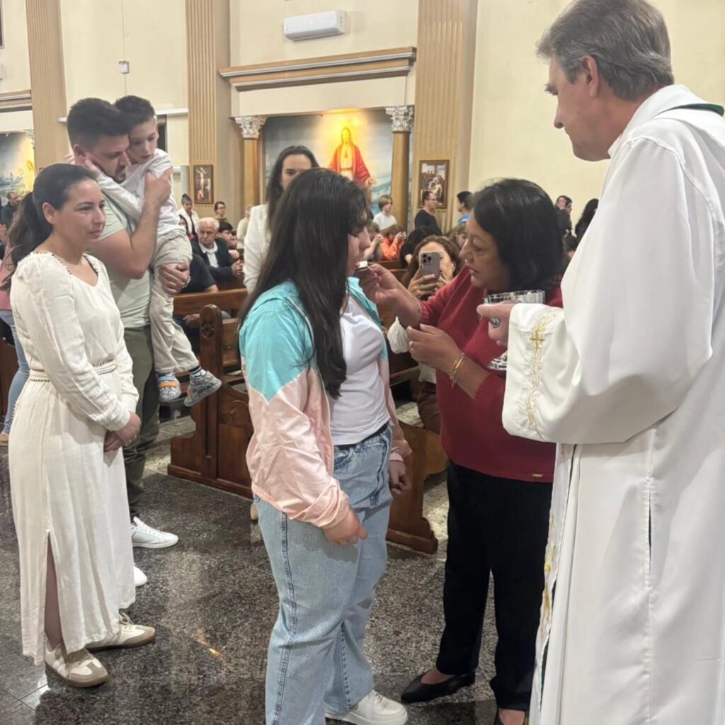 Um momento de fé, amor e renovação espiritual! No domingo, dia 12 de outubro, as crianças da APAE deram um passo muito especial em sua caminhada cristã, recebendo pela primeira vez o Corpo e o Sangue de Cristo.