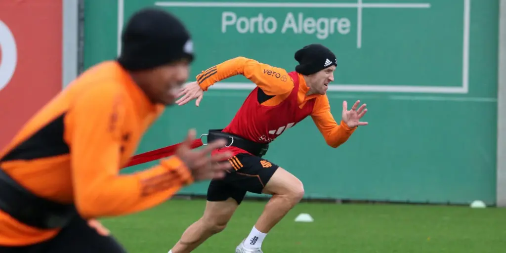 A comissão técnica colorada está usando os dias sem jogos para fazer uma espécie de pré-temporada. Ou seja, em muitos aspectos, os 10 dias sem jogos desde a vitória sobre o Vasco da Gama, no domingo passado, por 2 a 1, são uma espécie de recomeço de ano. O objetivo é retomar as partidas mais forte fisicamente, mas também recuperado emocionalmente. “A gente quer crescer em todos os sentidos. Físico, técnico, tático e principalmente, mental. O futebol brasileiro é muito desgastante. Vamos melhorar nesses dias”, afirma o preparador físico Flávio de Oliveira.