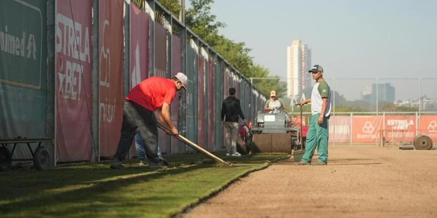 O Inter deve demorar pelo menos mais um mês para voltar ao CT Parque Gigante. De acordo com informações divulgadas pelo clube nesta terça-feira, boa parte dos serviços de reforma do local já foi executada, mas a grama dos campos só começou a ser plantada na semana passada.