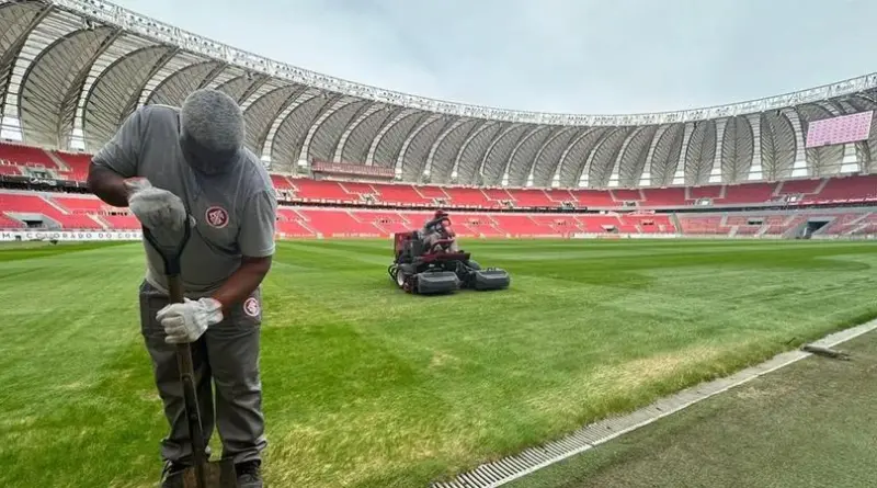O plantio da grama do Beira-Rio fechou nesta quarta-feira 26 dias e está praticamente concluído. “Para voltar ao Beira-Rio, vai ter coisas que não vão estar 100%. Já jogamos em estádios que não estavam em condições para receber jogo, hoje o Beira-Rio está melhor que vários lugares que nos receberam”, ressaltou Nunes.