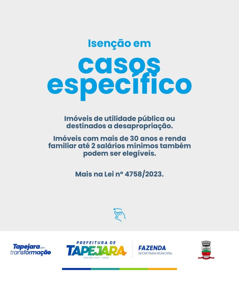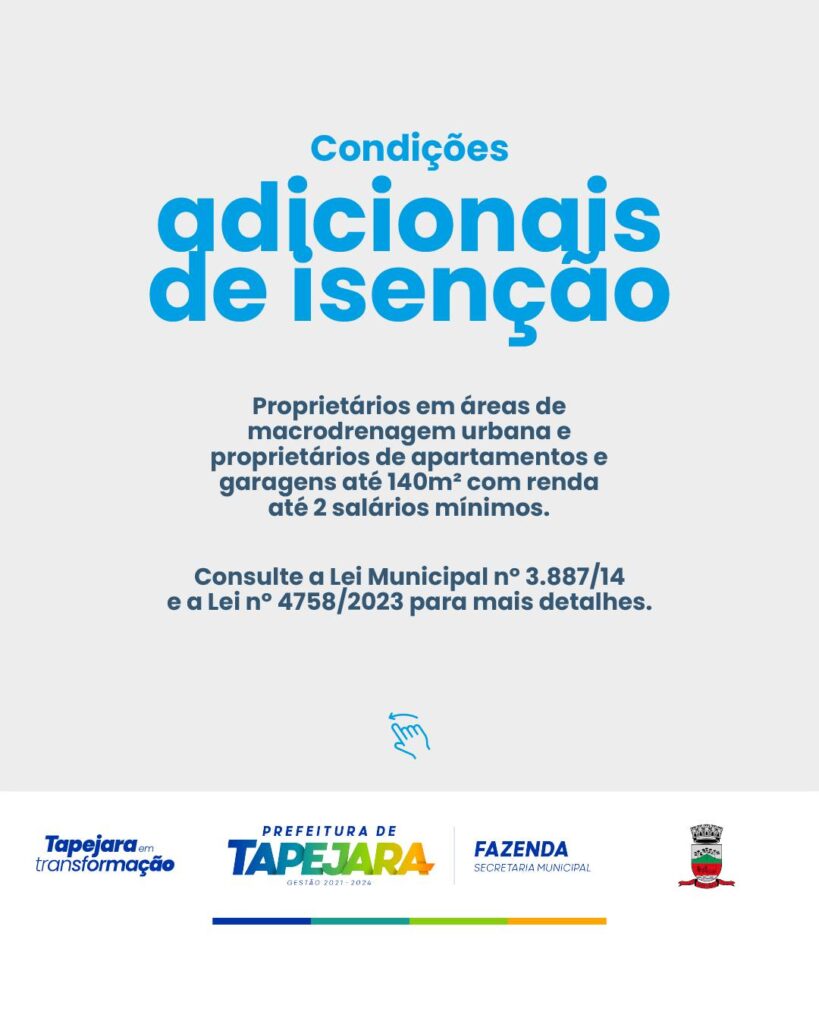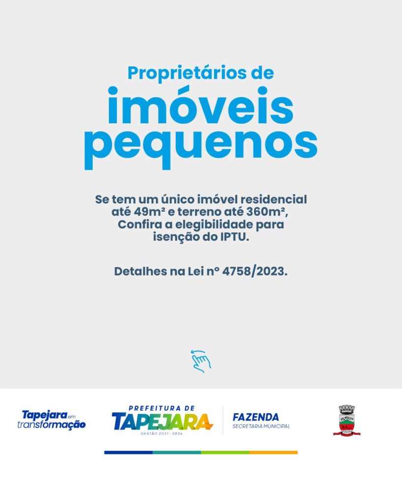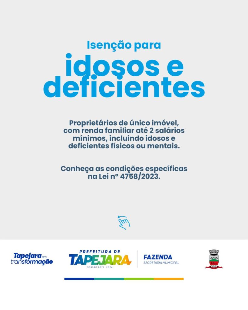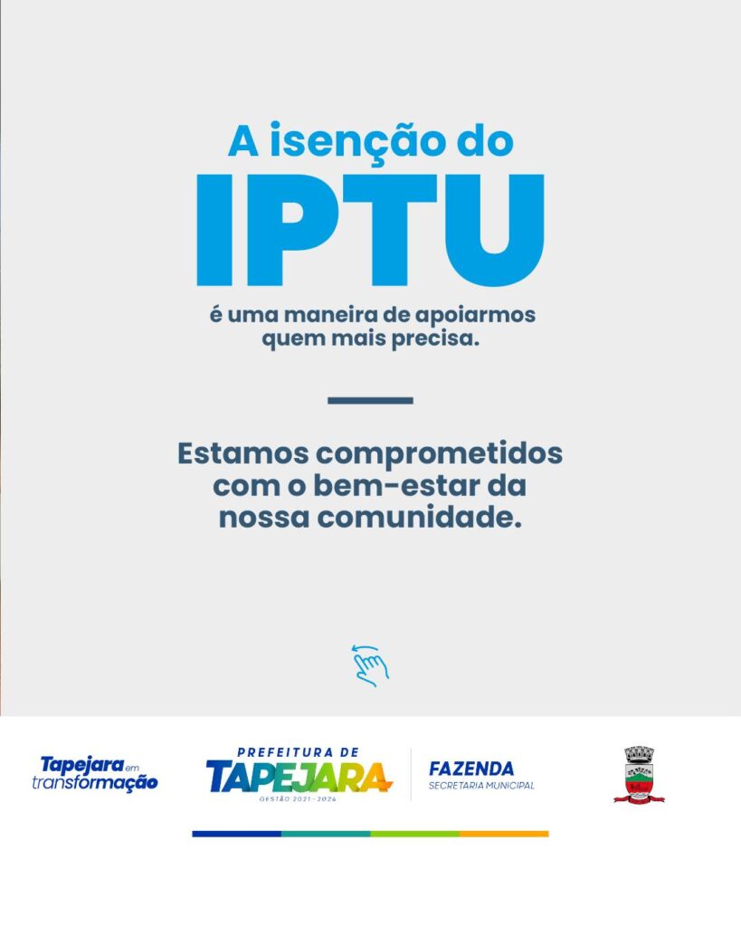 Moradores de Tapejara, temos notícias importantes! Estamos divulgando os critérios de isenção do IPTU para 2024, uma iniciativa para apoiar aqueles que mais precisam em nossa comunidade.
