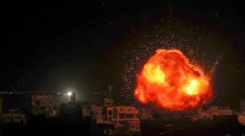 Uma bola de fogo iluminou a noite de terça-feira no céu da cidade de Rafah, no sul do território, o único centro urbano de Gaza que ainda não enfrentou uma ação das forças terrestres israelenses.