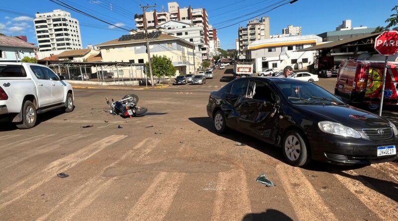 Envolveram-se no acidente um automóvel Toyota Corolla, de cor preta, que transitava pela Rua XV de novembro, sentido centro – saída para Santa Rita, e uma motocicleta Honda, de cor preta, que transitava pela Rua Julho de Castilhos, sentido centro – Bairro São Cristóvão.