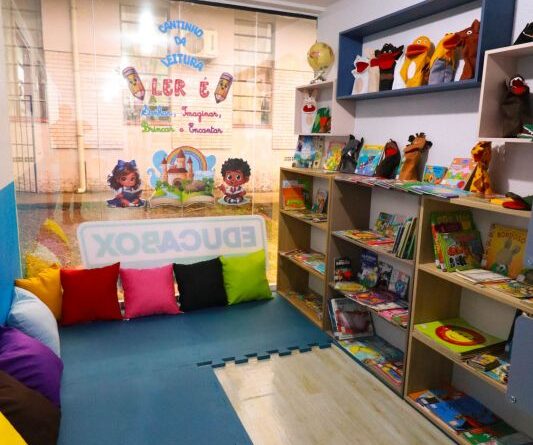 Além do laboratório, o EDUCABOX possui uma biblioteca moderna e acolhedora, oferecendo aos estudantes um ambiente especialmente preparado para o desenvolvimento da leitura. Os alunos podem também retirar livros para leitura em casa.