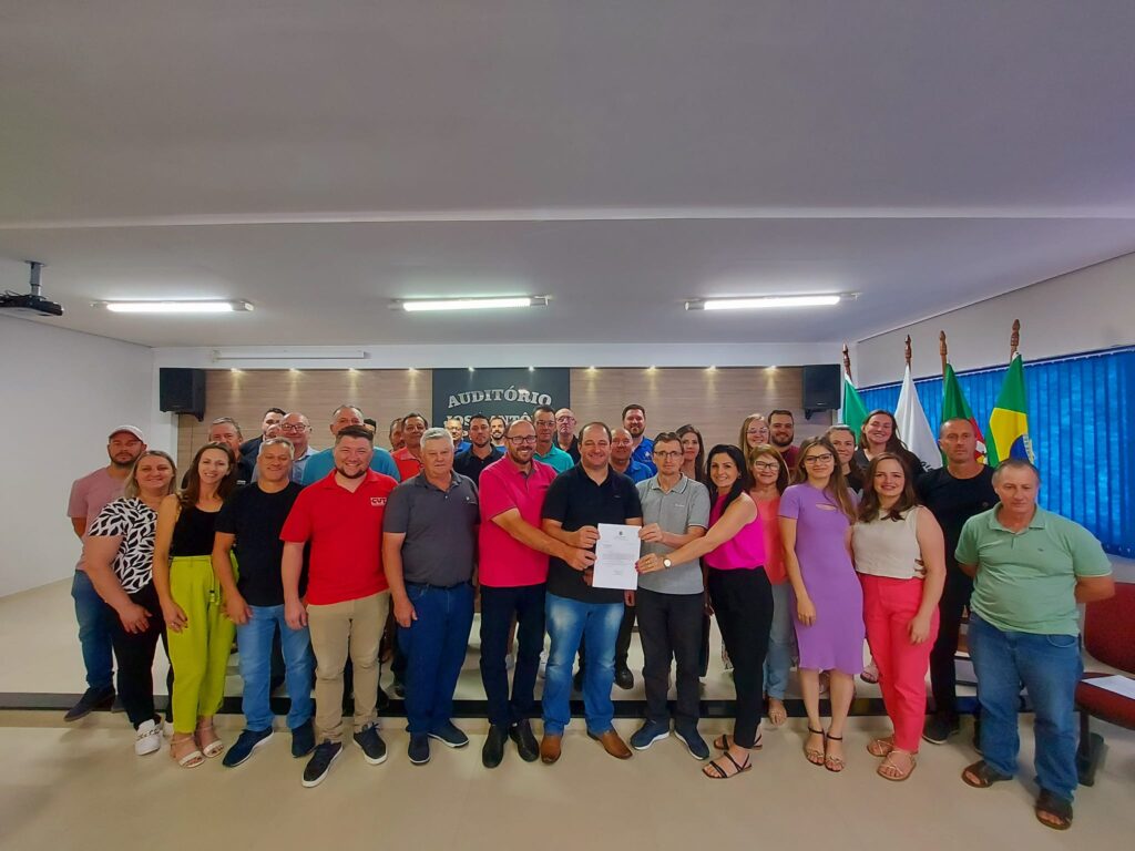 O Ofício foi entregue pelo Assessor do Deputado Dionilso Marcon, Sr. Elton Dalmoro e o Suplente de Deputado Estadual Sr. Claudiomiro Fracasso, juntamente com várias lideranças regionais.