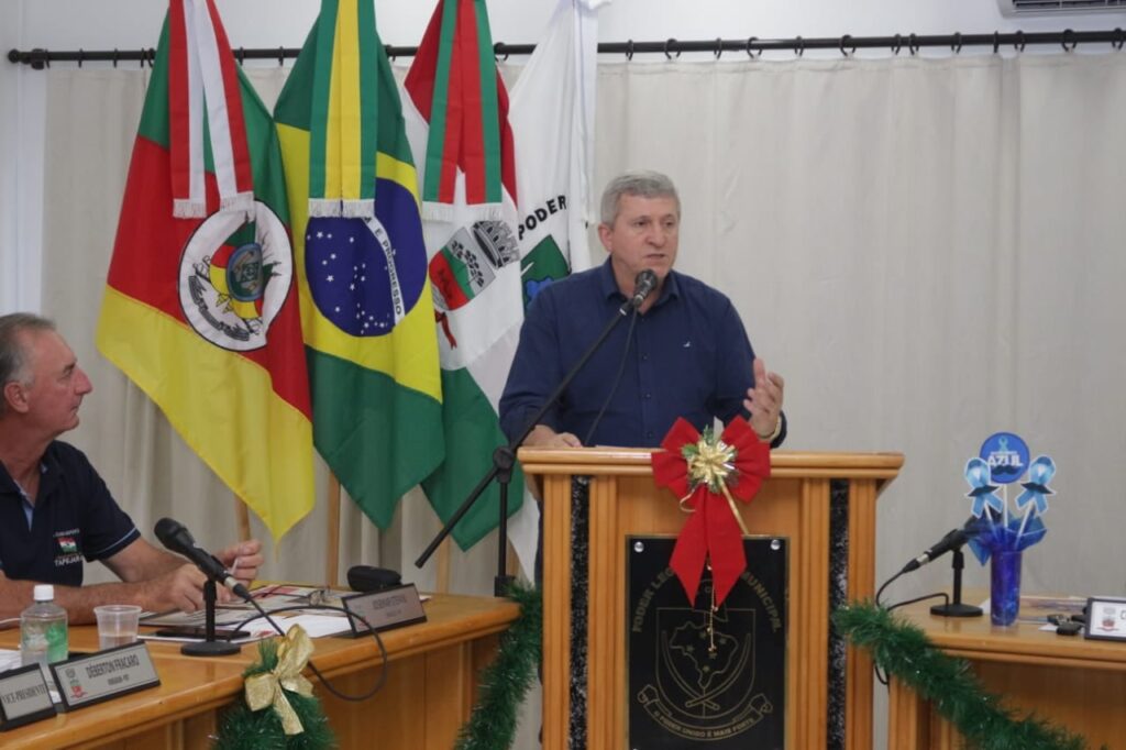 Melhorias totalizam um investimento de R$ 4.941.847,72. Na segunda-feira (29), o prefeito Evanir Wolff (BIG) e o vice-prefeito Rodinei Bruel (Gipe) participaram da Sessão Ordinária da Câmara de Vereadores de Tapejara entregando ao Poder Legislativo o Projeto de Lei nº 084/2021 que autoriza a contratar melhorias no sistema de iluminação pública, de todo o município, com um investimento total de R$ 4.941.847,72.O prefeito BIG, ao se pronunciar na tribuna da Casa Legislativa, explicou que o projeto visa à substituição das lâmpadas atuais por iluminação de led (cor branca), relatando que o investimento será pago em até 60 meses em parcelas fixas. “Com a aprovação do projeto pelos vereadores, o município terá uma economia de R$76 mil mensais nos custos com a iluminação pública”, destacou o prefeito, defendo que a mudança trará mais qualidade de vida aos tapejarenses. O prefeito agradeceu ainda a presença de todos os secretários que se fizeram presente na sessão como forma de apoiar a aprovação do projeto de lei que será votado em sessão a ser definida pelo legislativo.