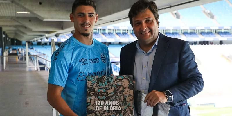 O jogador assinou contrato até o final de 2026. Nessa terça-feira, ele e outros contratados fizeram um tour pela Arena e receberam do presidente Alberto Guerra um livro sobre a história de 120 anos do clube