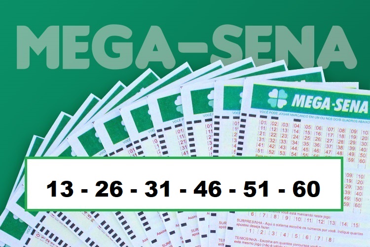 Os números 13-26-31-46-51-60 foram sorteados pela Caixa no concurso 2451 da Mega-Sena, realizado na noite deste sábado (5), em São Paulo. Quem tiver acertado todas as dezenas vai ganhar um prêmio estimado de R$ 26.422.347 milhões.