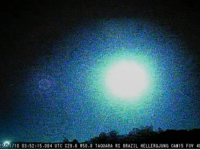 Um bólido – como são classificados os meteoros extremamente brilhantes – cruzou o céu da região Sul do Brasil e produziu uma luz intensa ao explodir sobre a divisa entre os Estados do Rio Grande do Sul e de Santa Catarina, na madrugada desta segunda-feira, 10. O fenômeno foi registrado pelo Observatório Heller & Jung.