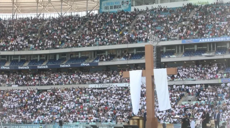 Milhares de fiéis lotam a Arena do Grêmio em ato de fé na Sexta-feira da Paixão