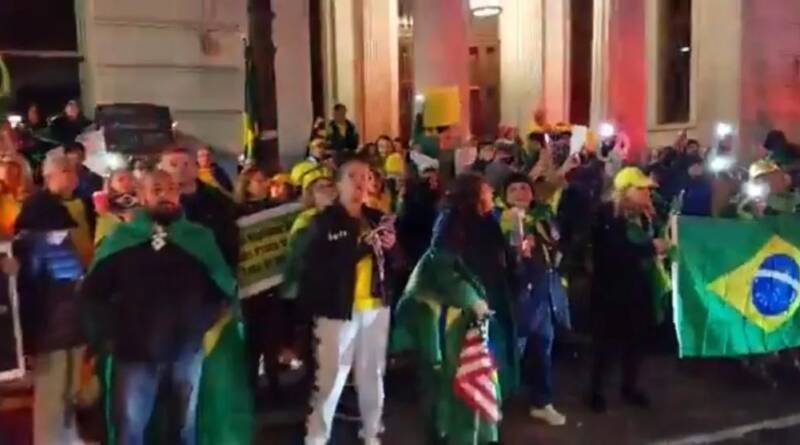 Mais cedo, segurando cartazes com os dizeres “SOS Forças Armadas” e com roupas nas cores verde e amarelo, os manifestantes gritaram: “Ei, Xandão, seu lugar é na prisão”, em referência ao ministro Alexandre de Moraes, presidente TSE (Tribunal Superior Eleitoral). Ele também foi chamado de “cabeça de ovo”.