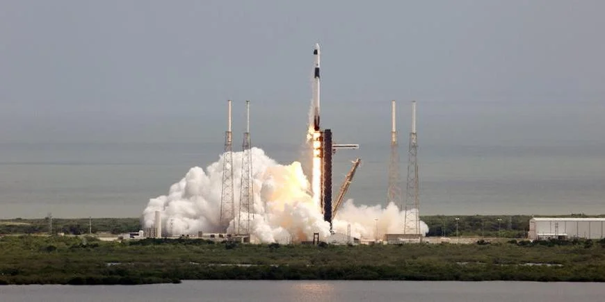 O foguete Falcon 9 decolou às 12h17 de Brasília, de Cabo Canaveral, na Flórida, em um lançamento de uma plataforma usada pela primeira vez para uma missão tripulada.