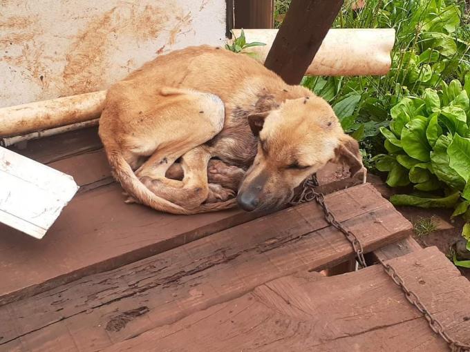 O cachorro foi medicado de forma voluntária por veterinária proprietária de Pet de Cacique Doble e será encaminhado para outra pessoa voluntária que se prontificou a cuidar do animal de forma provisória até que se encontre um lar definitivo.