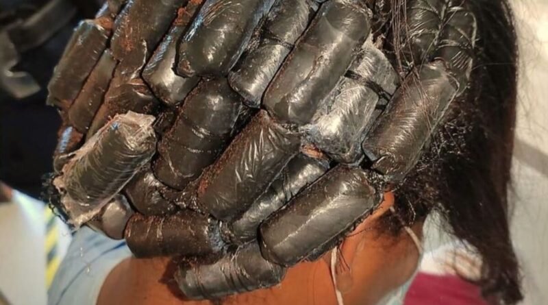 Após submetê-la a um escâner, os agentes observaram que em meio às tranças entre seu cabelo natural e uma peruca que usava estavam escondidos comprimidos de droga presos em sua cabeça.
