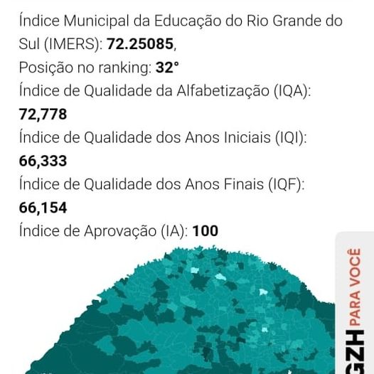 O Município de Santa Cecilia do Sul ficou entre os melhores do estado na prova do SAERS. Dos 497 municípios avaliados, obteve a posição de 32º lugar, e na região que compõe a Amunor ficou em 1º lugar. “Este é o resultado de todo o investimento e esforço que a administração municipal fez e faz na área da educação” destacou a secretária da educação Marta Zanatta Galina.