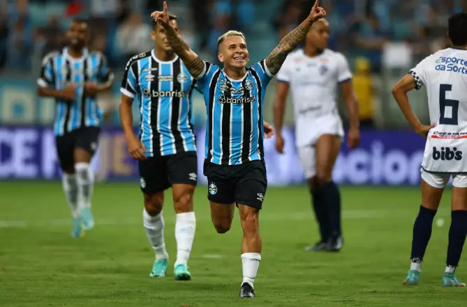 O ponteiro passava e o Grêmio seguia insistindo no ataque. Com 11 minutos jogados, a equipe de Portaluppi balançou as redes. Soteldo, pela esquerda, cruzou na cabeça de J.P. Galvão, que não desperdiçou.