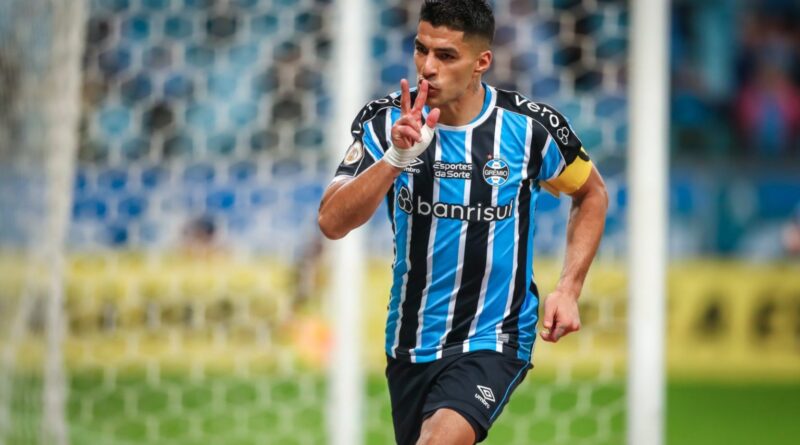 Aos 29, Gol do Grêmio! O uruguaio recebeu na intermediária e achou bom passe para Pepê na esquerda. O volante devolveu para Suárez dentro da grande área. O camisa 9 dominou e soltou a bomba. A bola passa por baixo do corpo do goleiro Walter. Grêmio 1 x 0 Cuiabá.