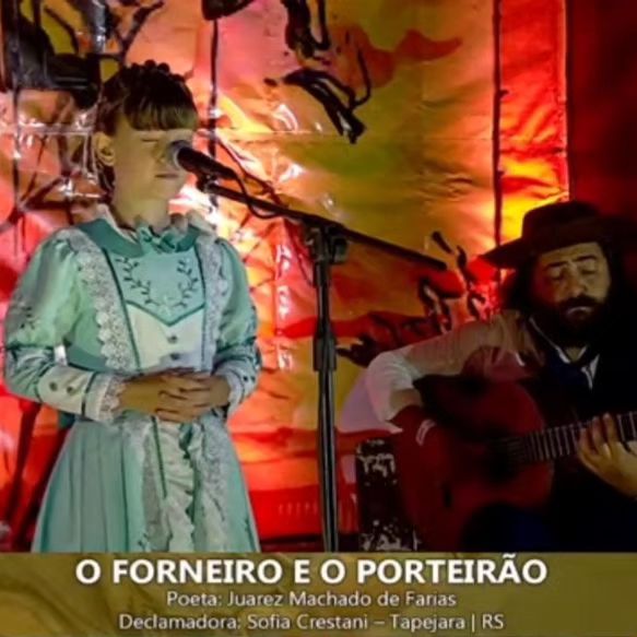 No palco do 1⁰ Obelisco da Poesia Gaúcha e 1⁰ Renascer da Poesia Crioula, representante do CTG Manoel Teixeira de Tapejara conquista 3º Lugar em Declamação fase regional