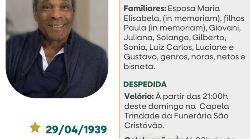 A Funerária São Cristóvão, juntamente com a família da Silva, comunica com pesar, o falecimento de João Cordeiro da Silva, ocorrido às 16 horas do dia 12/04/2026 no Hospital de Clínicas de Passo Fundo, com 86 anos de idade. Seu corpo está sendo velado na Capela Trindade da Funerária São Cristóvão. Celebração às 14 horas do dia 13/04/2026 no local do velório e após seu corpo sera transladado para o Cemitério Municipal de Ibiaçá onde será sepultado..