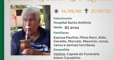 A Bianchi Funerárias, juntamente com a família de Mezzomo, comunica com pesar, o falecimento de Nair de Lima Mezzomo, ocorrido à 00h50 do dia 12/09/2025 no HSA de Tapejara com 75 anos de idade. Seu corpo está sendo velado na Capela da Bianchi Funerárias de Ibiaçá. Celebração às 16h30 do dia 12/09/2025 no Santuário Nossa Senhora Consoladora e após seu sepultamento no Cemitério Municipal João Rombaldi.