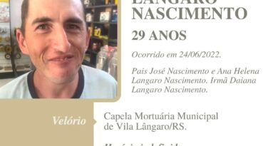 A Funerária São Cristóvão, juntamente com a família Wolff, comunica com pesar, o falecimento de Osmar Adelar Wolff, com 58 anos de idade, ocorrido tragicamente as 10:45 horas de sexta-feira (10/12) em Tapejara. Seu corpp está sendo velado na Capela Trindade da Funerária São Cristóvão. Culto as 14:30 horas de sábado (11/12) na capela e após seu sepultamento no Cemitério Municipal João Rombaldi