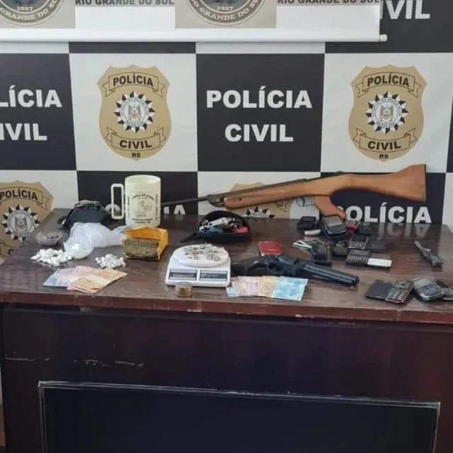 Durante a operação foram localizadas 454 gramas de maconha, 48 gramas de cocaína, 34 pedras de crack prontas e embaladas pesando 16 gramas, R$ 270,00 em células, R$ 36,25 em moedas, um simulacro, uma espingarda de pressão sem nota fiscal e diversos telefones celulares.