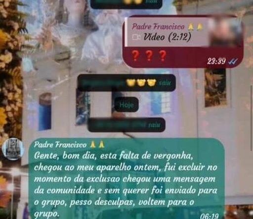 ‘Prints’ da conversa rapidamente viralizaram na internet, causando polêmica no distrito da cidade de Santo Amaro. Vídeo postado em grupo de mensagens mostra dois homens em ato sexual.O padre que publicou imagens pornográficas em um grupo de aplicativo de mensagens, anunciou nesta segunda-feira (14) a saída da paróquia de Oliveira dos Campinhos, distrito de Santo Amaro, cidade que fica no recôncavo baiano, onde atuava há sete anos.O vídeo foi compartilhado no grupo que reunia fiéis da igreja onde o padre atuava e ocorreu na quarta-feira (2). Rapidamente os “prints” viralizaram na internet, causando polêmica no distrito e região. O vídeo postado por ele tem mais de dois minutos de duração e mostra dois homens em ato sexual.”Estão tramando algo contra a paróquia, motivando as pessoas a não contribuírem mais com o dízimo e as ajudas para os festejos paroquiais. E vocês sabem, sem a ajuda não poderemos caminhar, então por causa disso decidi deixar a paróquia, para ver se acalma os corações inflamados”, escreveu o padre.