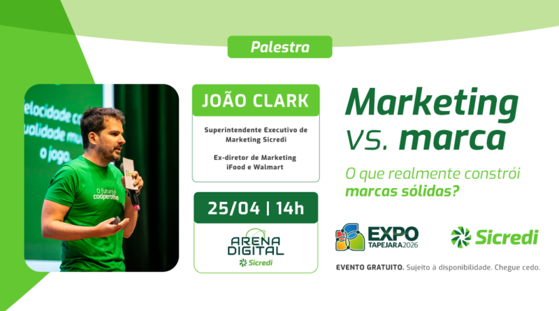 Entender o que realmente sustenta marcas fortes vai além de estratégias pontuais de marketing. Com essa proposta, a Expo Tapejara 2026 recebe, no dia 25 de abril, às 14h, a palestra “Marketing vs. Marca: o que realmente constrói marcas sólidas”, que será realizada na Arena Digital Sicredi, com acesso gratuito ao público.