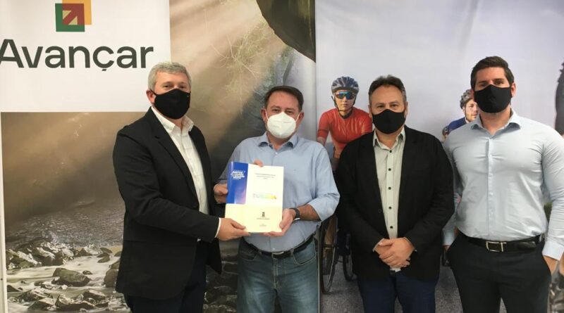 Em Porto Alegre, nesta terça-feira (08), o prefeito Evanir Wolff (BIG) e o secretário da Educação, Desporto e Cultura, Paulo César Langaro, estiveram no gabinete do secretário Estadual do Turismo, Ronaldo Santini, entregando o projeto que contempla o asfaltamento interno do Parque Municipal Ângelo Eugênio Dametto, totalizando 13.945,25 metros quadrados de pavimentação.