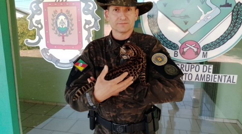Nesta segunda-feira (19/06), os policiais militares, do 3º Batalhão Ambiental da Brigada Militar de Lagoa Vermelha, resgataram um filhote de Gato-maracajá.