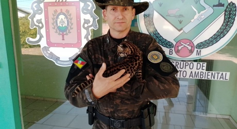 Nesta segunda-feira (19/06), os policiais militares, do 3º Batalhão Ambiental da Brigada Militar de Lagoa Vermelha, resgataram um filhote de Gato-maracajá.