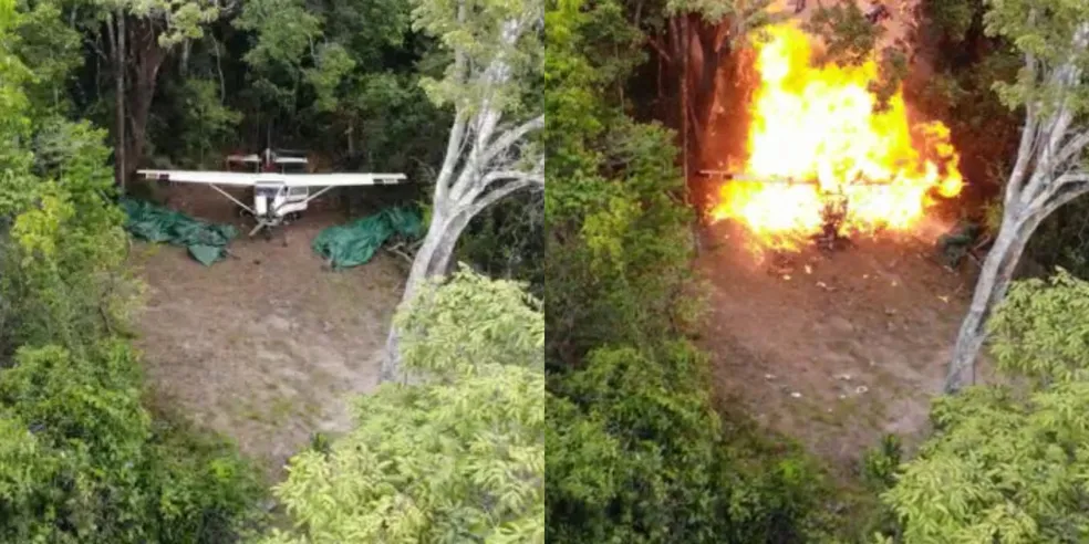 O avião estava escondido no meio da mata e foi destruído com uso de explosivos. A destruição da aeronave, segundo PF, ocorreu após fiscais do Instituto Brasileiro do Meio Ambiente e dos Recursos Naturais Renováveis (Ibama) atestarem os indícios de que o monomotor era usado em ilícitos ambientais.