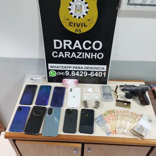 A Delegacia de Repressão às Ações Criminosas Organizadas (Draco) de Carazinho deflagrou uma operação contra o tráfico de drogas, que resultou na prisão de três indivíduos investigados por envolvimento com uma facção criminosa atuante na cidade.
