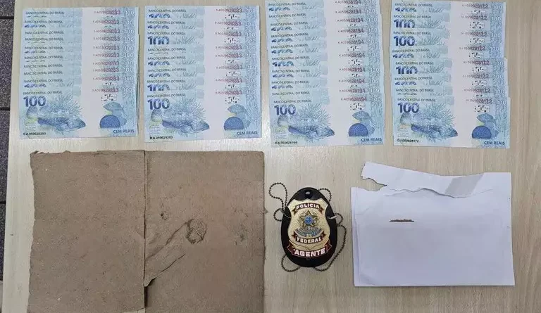 Após receber informações do envio de uma remessa suspeita de conter cédulas falsas, policiais federais passaram a monitorar a entrega. A destinatária foi abordada pela equipe policial após receber o envelope. Na ação, foram apreendidas 37 notas de R$ 100, todas com indícios de falsidade, especialmente pela numeração repetida.