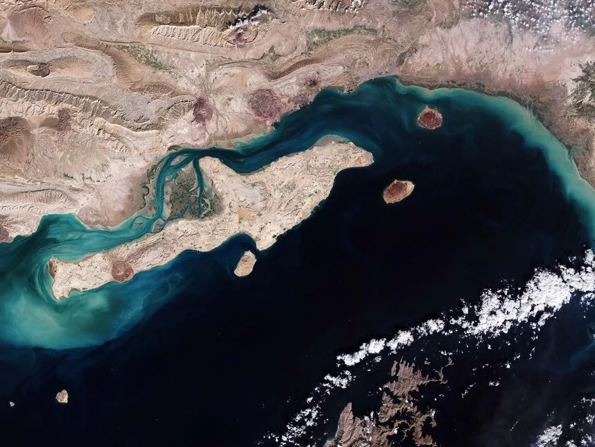 A área também é marcada por ilhas estrategicamente posicionadas, como Ilha de Ormuz, Qeshm e Larak, controladas pelo Irã. Outras ilhas disputadas, como Abu Musa e as ilhas Grande Tunb e Pequena Tunb, também fazem parte da organização geopolítica da região.