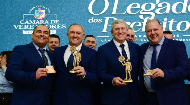 O prefeito Evanir Wolff (Big) e o vice-prefeito Rodinei Bruel (Gipe) foram homenageados na noite de quinta-feira (16), durante a solenidade de lançamento do documentário “O Legado dos Prefeitos”, promovida pela Câmara de Vereadores de Tapejara. Realizado no La Felicità Eventos, o encontro integrou a programação oficial dos 70 anos de emancipação político-administrativa do município e reuniu autoridades, lideranças políticas, ex-prefeitos, ex-vice-prefeitos, familiares, vereadores, empresários e comunidade.