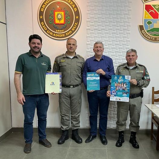 Na segunda-feira (04), o prefeito Evanir Wolff (BIG) e o vice-presidente da Expo Tapejara, Jeferson Favretto estiveram reunidos, em Passo Fundo, com o Comando do CRPO-Planalto, coronel Volnei Ceolin e com o comandante do 3° RPMon, tenente coronel Marco Antônio dos Santos Morais para entregar o convite oficial de participação da cerimônia de abertura da 11ª Expo Tapejara, que acontece de 06 a 09 de agosto, no Parque Municipal Ângelo Eugênio Dametto.