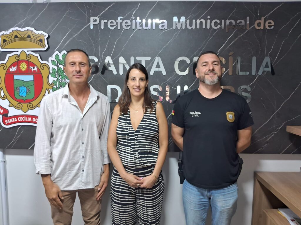 Prefeito de Santa Cecília do Sul recebe Delegada Tais Bee Wittee Netzow e Escrivão Lucas Gasparin e firmam parceria estratégica com a Polícia Civil