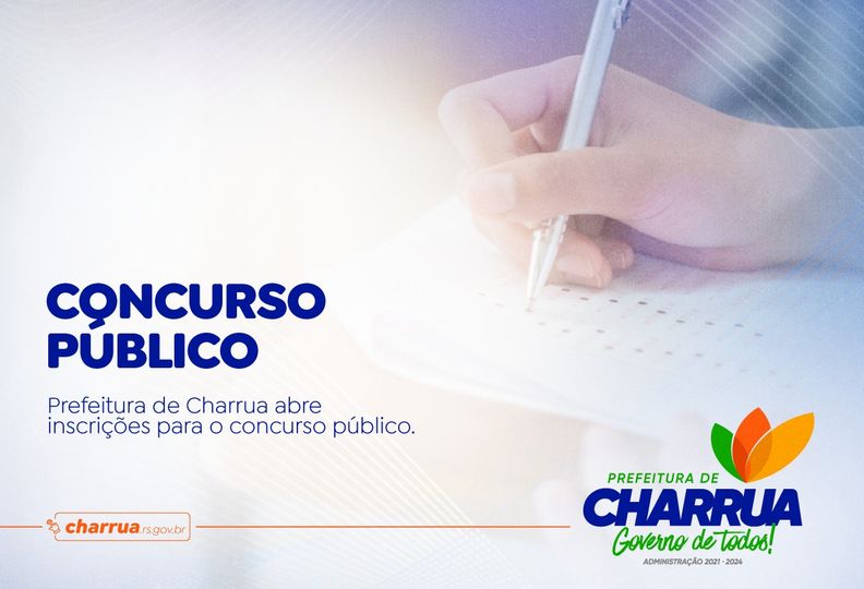 A Prefeitura de Charrua abre amanhã, terça-feira, dia 11 de Outubro, as inscrições para concurso público nº 01/2022. Os cargos oferecidos possuem remuneração entre R$ 1.634,00 e R$ 13.484,00, para regime de trabalho semanal de 20h a 44h.