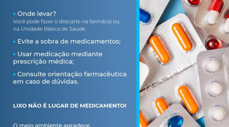 Descarte de medicamentos vencidos ou não, é uma preocupação para a saúde pública, visto que podem ocasionar danos à saúde e gerar contaminantes. Por isso, eles não devem ter a mesma destinação final de resíduos comuns. O descarte no lixo comum ou na rede de esgoto pode contaminar o solo, as águas, como rios, lagos e oceanos causando danos no meio ambiente.