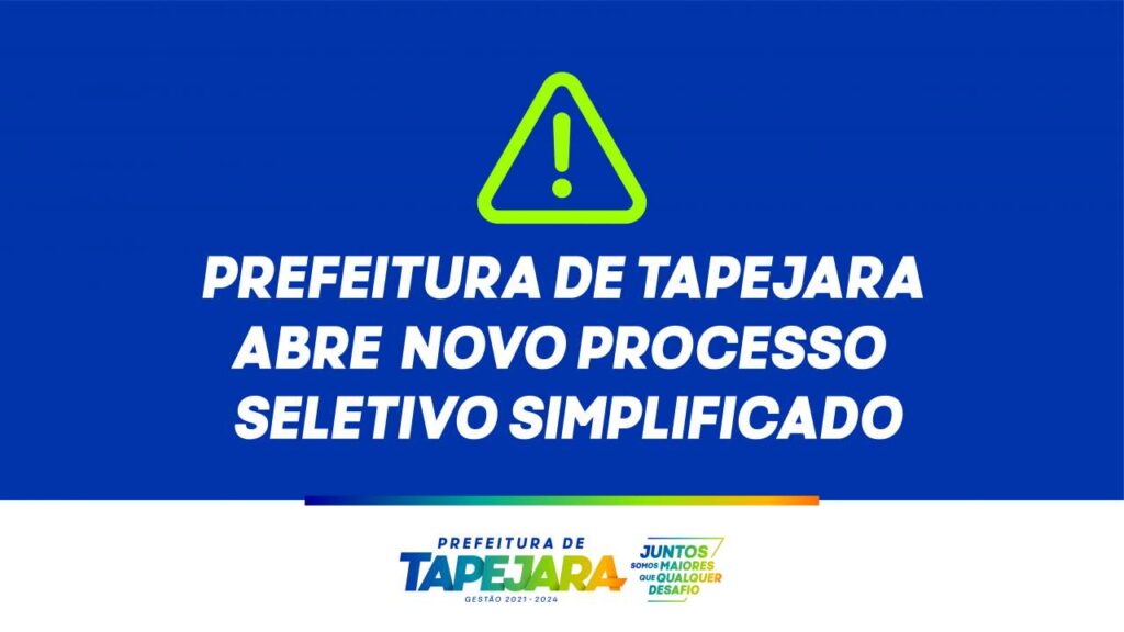 O Município de Tapejara, no uso de suas atribuições legais, visando ao preenchimento de vagas e a formação de Cadastro Reserva (CR) para empregos temporários, nos termos do Decreto Municipal n.º 4059/14 de 22 de setembro de 2014, torna público que realizará PROCESSO SELETIVO SIMPLIFICADO, cadastro reserva, para atender às necessidades da Secretaria Municipal de Educação, para os seguintes Cargos: Cuidador Educacional–20h; Monitor de Creche–30h, através de Prova Títulos. Inscrições de 09 a 16 de setembro de 2022, das 8h30min às 11h30min e das 13h30min às 17 horas – Local: PREFEITURA MUNICIPAL DE TAPEJARA, sita na Rua do Comércio, 1468, Tapejara – RS. Valor das Inscrições de R$ 15,00. Edital em inteiro teor encontra-se disponível no Átrio de Publicações Oficiais da Prefeitura e no site www.tapejara.rs.gov.br. Tapejara-RS, 06 de setembro de 2022.