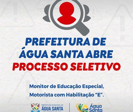 O Município de Água Santa, TORNA PÚBLICO, a todos os interessados que no período de 10 a 15 de agosto de 2022, em dias de atendimento na Secretaria Municipal de Administração, no horário das 8h30min às 11h30min horas e das 13h30min às 17h30min horas, estarão abertas as inscrições para o preenchimento de cadastro de vagas reservas, para possíveis contratações emergenciais junto ao Serviço Público Municipal, observado as exigências simplificadas deste edital e da legislação vigente.