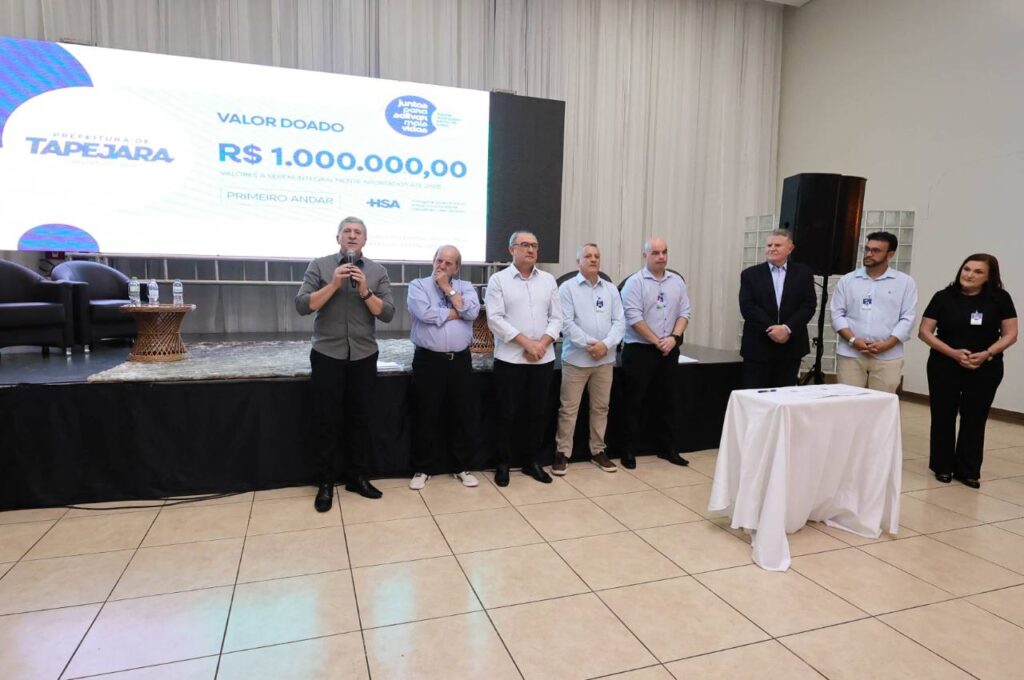 A Prefeitura de Tapejara consolidou, na noite de quarta-feira (26), seu papel de liderança na mobilização regional pela ampliação do Hospital Santo Antônio. Durante o ato de apresentação do projeto e da formalização das doações da campanha Juntos para Salvar Mais Vidas, o prefeito Evanir Wolff (Big) e o vice-prefeito Rodinei Bruel (Gipe) confirmaram o aporte de R$ 1 milhão destinado à construção do primeiro andar do novo prédio da instituição.