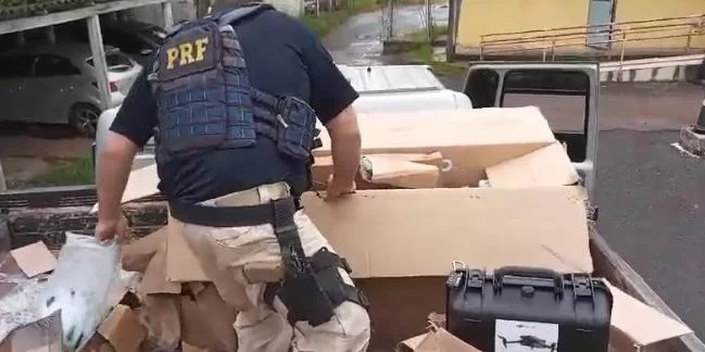 O caminhão estava aparentemente carregado com latas e garrafas para reciclagem. Ao retirarem as sacolas da parte superior, os PRFs descobriram que o lixo servia para ocultar outra carga, de contrabando. Foram localizados materiais eletrônicos de última geração, como Iphones, videogames, drones e equipamentos médicos, além de medicamentos e suplementos sem registro na Anvisa.