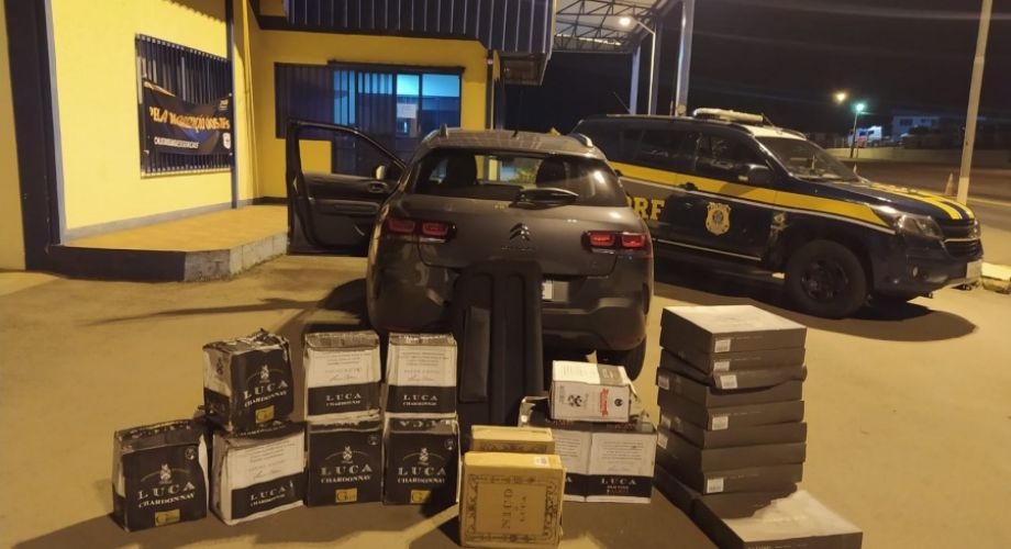 A primeira apreensão ocorreu por volta das 14 horas, um Toyota/Corolla Cross, com placas de Novo Hamburgo-RS, transportando aproximadamente 264 garrafas de vinhos.