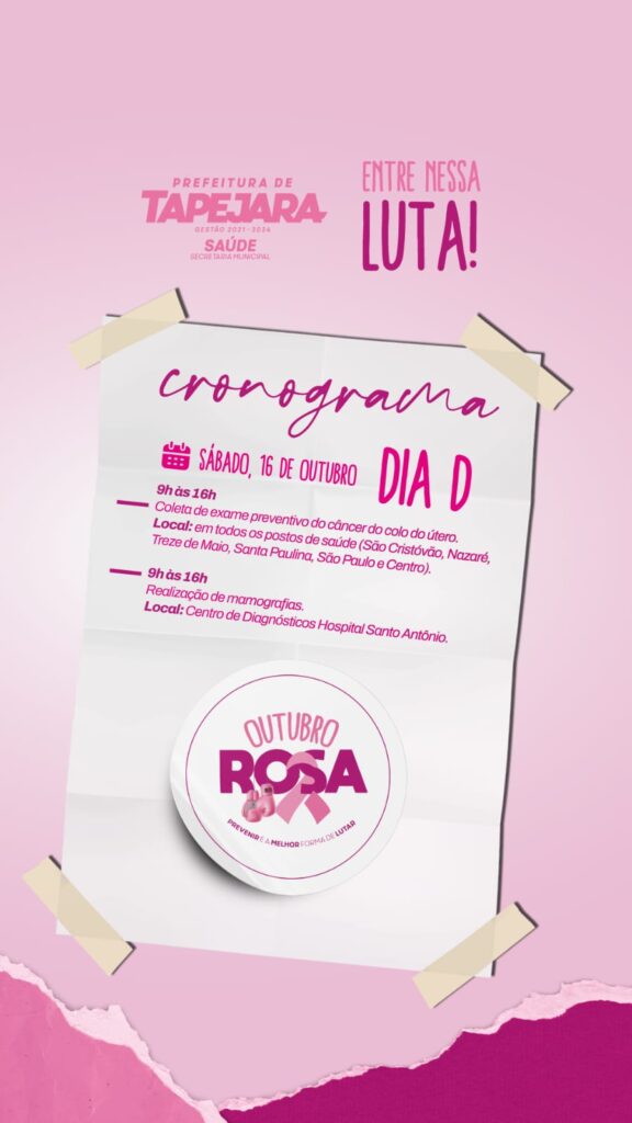 Acompanhe a programação do Outubro Rosa para este sábado (16) e participe das ações!