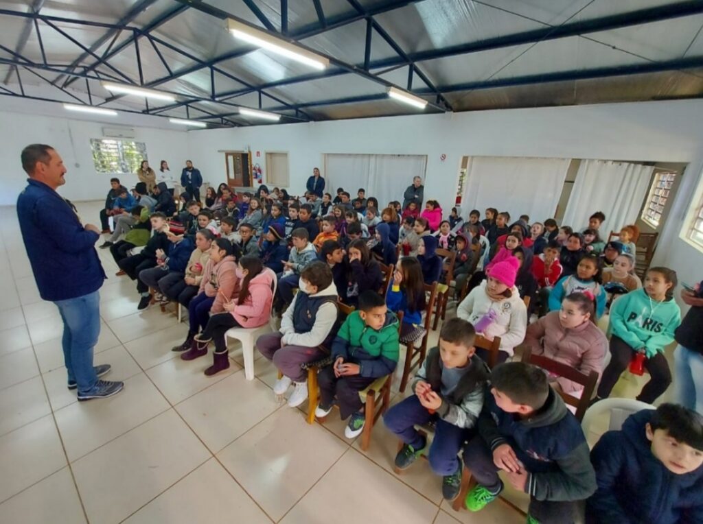 O músico Ervan Silveira proporcionou às crianças um momento de descontração, onde inicialmente desenvolveram o sentimento de patriotismo com a entoação do Hino Riograndense e de Tapejara, além de catarem diversas músicas de boas-vindas com o auxílio do músico.